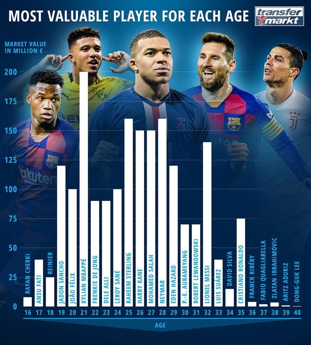 전세계 축구 나이별 최고 몸값 선수에 이름 올림 ㅋ