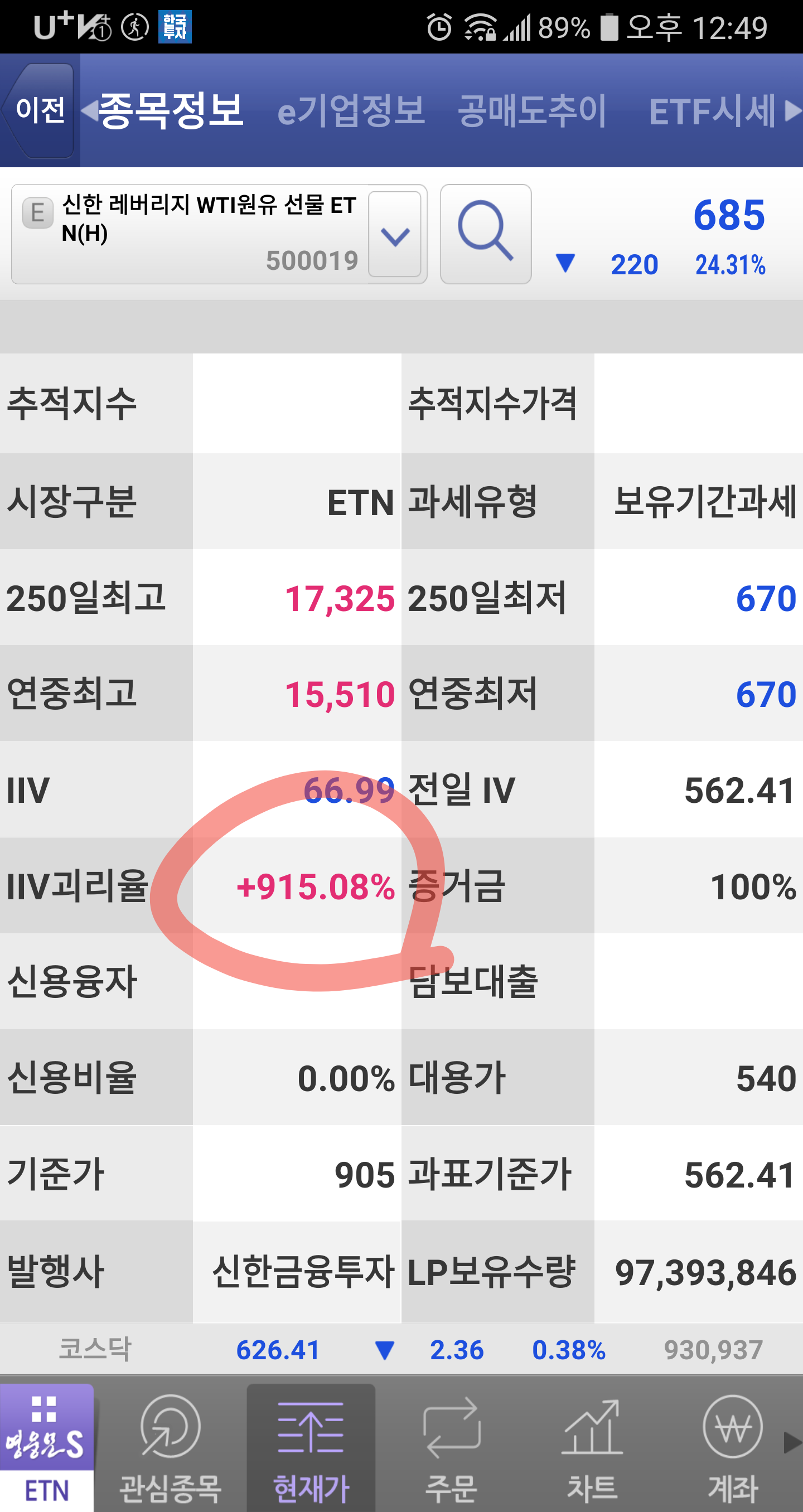 신한 레버리지 WTI원유 선물 ETN 500019 괴리율 상황