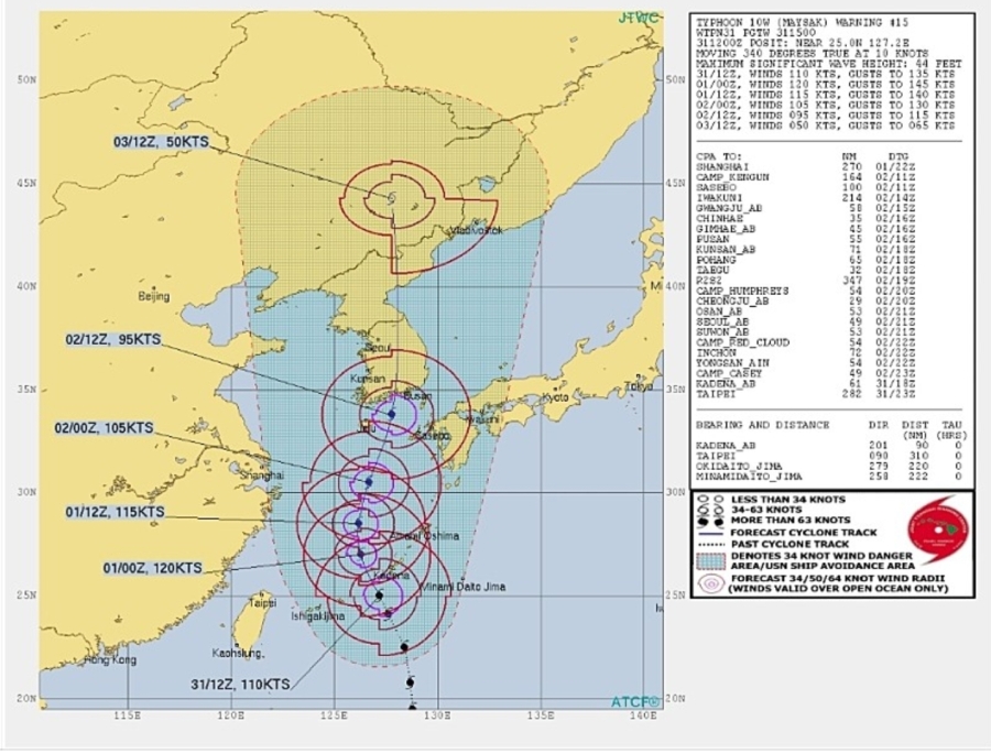 태풍 마이삭 23시 미해군 JTWC 예보